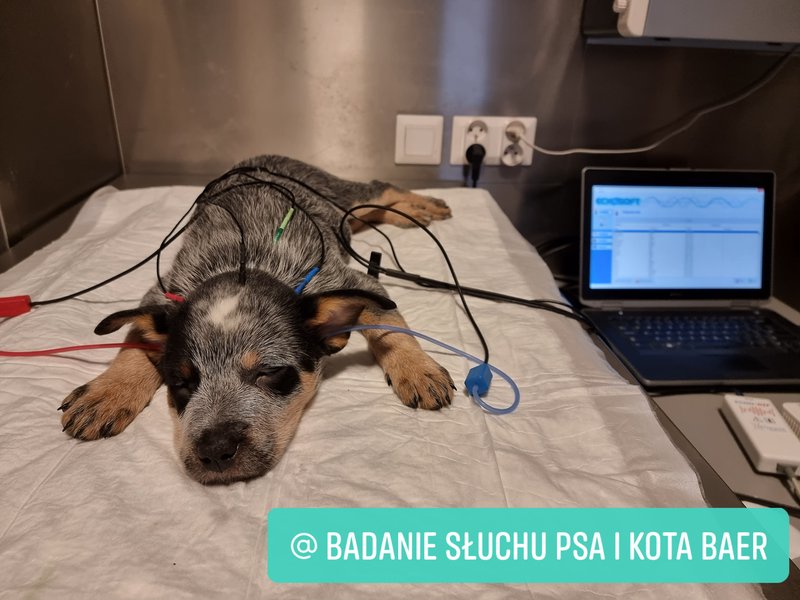 Pacjent wybudza się niedługo po zakończeniu badania i na własnych łapach, przytomny wraca do domu, co daje nam pewność, że dobrze zniósł lekkie znieczulenie. Samo badanie BAER jest krótkie (ok. 10 minut), jednak pozostały czas przeznaczamy na przygotowanie pacjenta do znieczulenia, jego wybudzenie oraz wypisanie odpowiedniej dokumentacji. Dlatego też na wizytę jednego szczenięcia/kocięcia przeznaczamy około 45-60 minut. Dla miotów czas ten się skraca ze względu na ograniczenie czasu związanego z wypisaniem dokumentów.